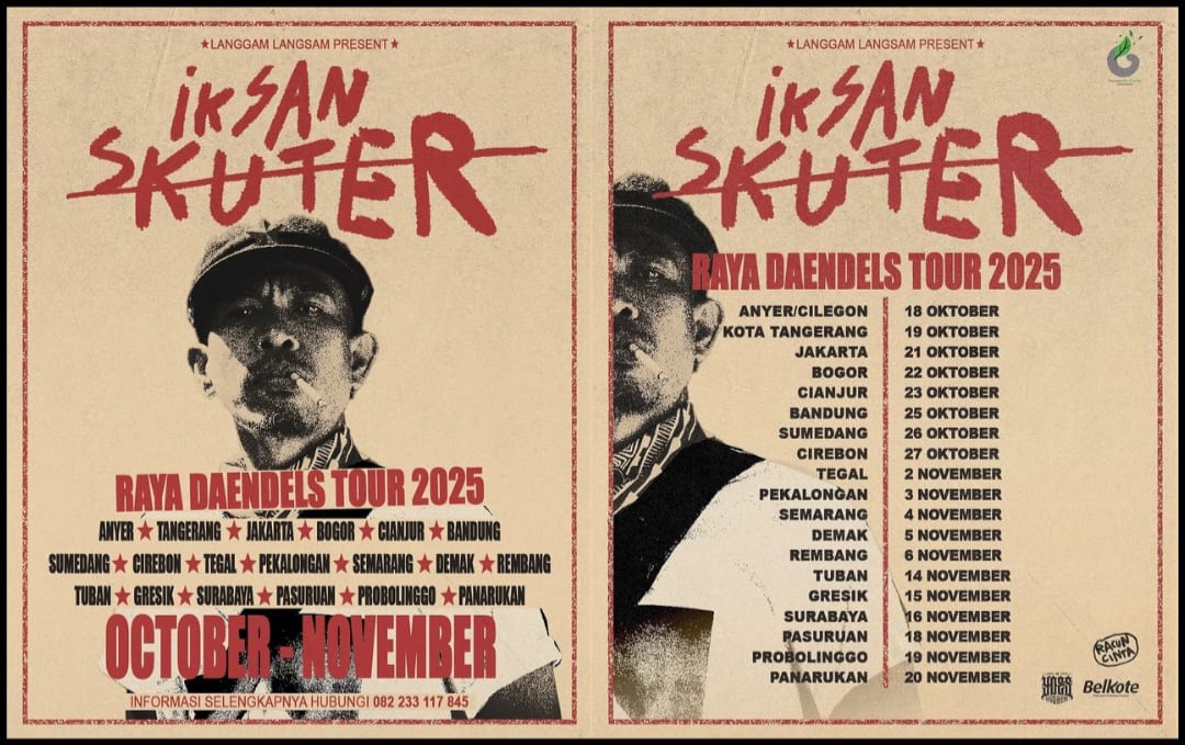 Malang — Musisi solois Iksan Skuter mengumumkan rangkaian perjalanan musik bertajuk “Raya Daendels Tour 2025”, sebuah tur akustik lintas Jawa yang menempuh jarak sekitar 1.000 kilometer dari Anyer hingga Panarukan. Tur ini akan berlangsung mulai 18 Oktober hingga 20 November 2025, melintasi 5 provinsi dan 19 kota, dimulai dari Cilegon dan berakhir di Panarukan.