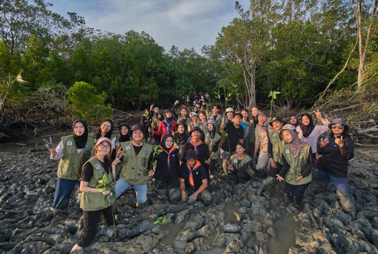 Selain menanam bibit mangrove, peserta juga mendapatkan pembelajaran langsung mengenai praktik silvofishery—model budidaya perikanan yang terintegrasi dengan pelestarian mangrove. Pendekatan ini menjadi contoh nyata bahwa konservasi lingkungan dapat berjalan beriringan dengan peningkatan kesejahteraan masyarakat.